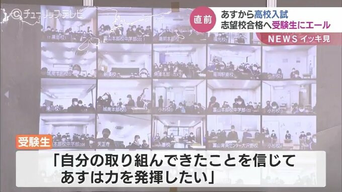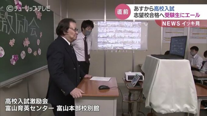 8日から富山県立高校の一般入試が始まります。本番を前に学習塾の富山育英センターでは7日、激励会が開かれました。