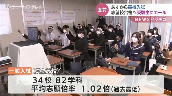 県立高校の一般入試は34校82学科で行われ、平均志願倍率は1.02倍と2年連続で過去最低を更新しました。試験は7日と8日の2日間行われ、合格発表は今月16日です。