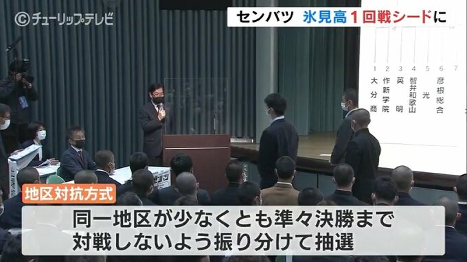 今月18日に開幕するセンバツ高校野球大会の組み合わせ抽選会が行われ、富山県から初となる21世紀枠で出場する氷見高校は1回戦シードとなり、大会6日目に対戦することが決まりました。