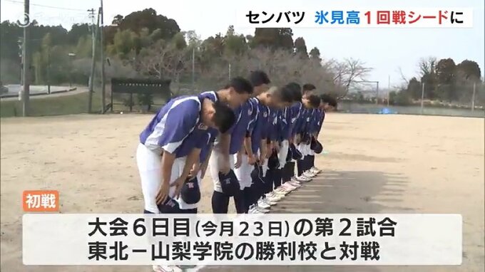 氷見高校の初戦は大会6日目の今月23日、第2試合で東北と山梨学院の勝利校と対戦することが決まりました。