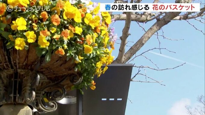バスケットは、黄色やオレンジのパンジーを中心に「活力都市とやま」をイメージした華やかな仕上がりとなっていて、春の訪れを感じさせます。