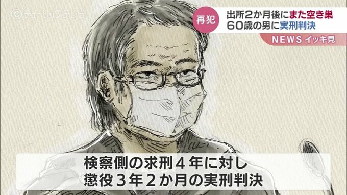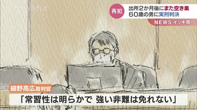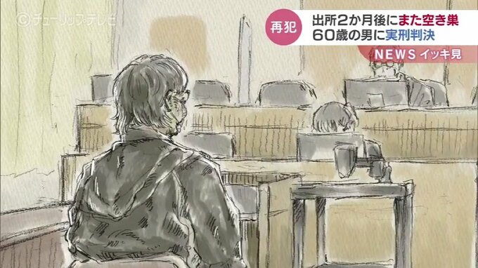 刑務所を出所したばかりにも関わらず空き巣を繰り返していた男に実刑判決です。