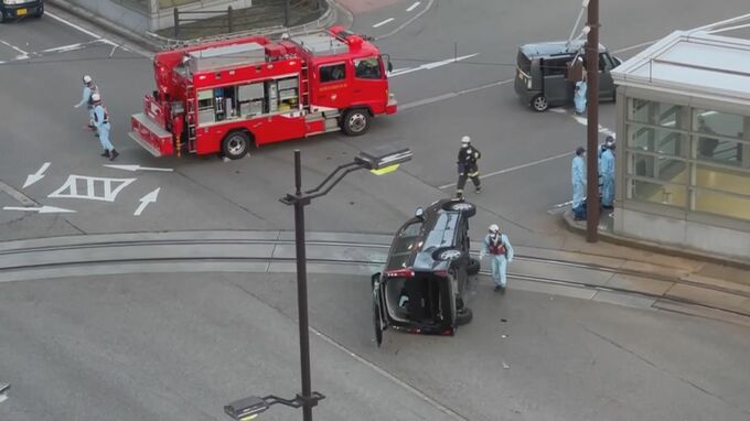 万葉線によりますと15日午後5時45分ごろ、高岡駅北口の万葉線の線路内で車が横転する事故がありました。