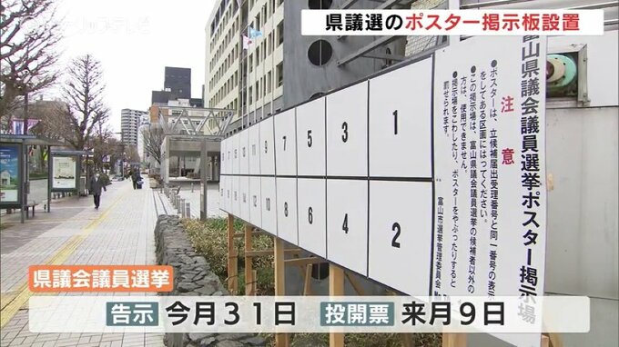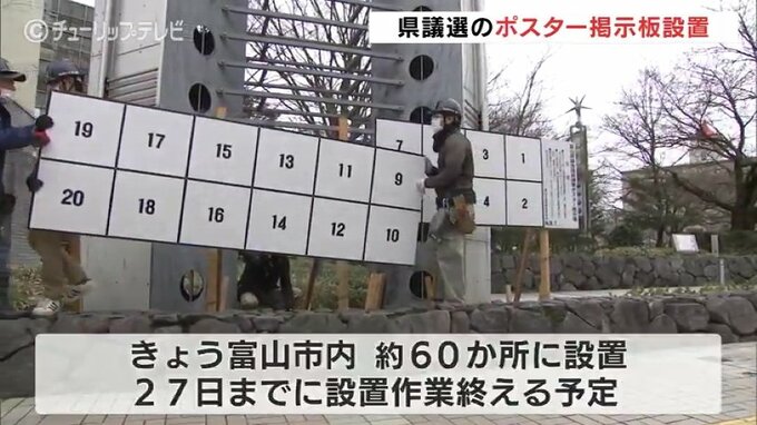 今月31日に告示される富山県議会議員選挙に向け、立候補者のポスター掲示板の設置作業が17日始まりました。