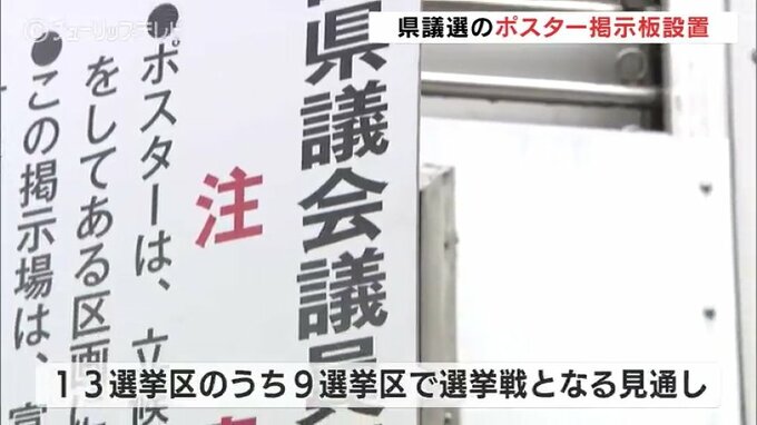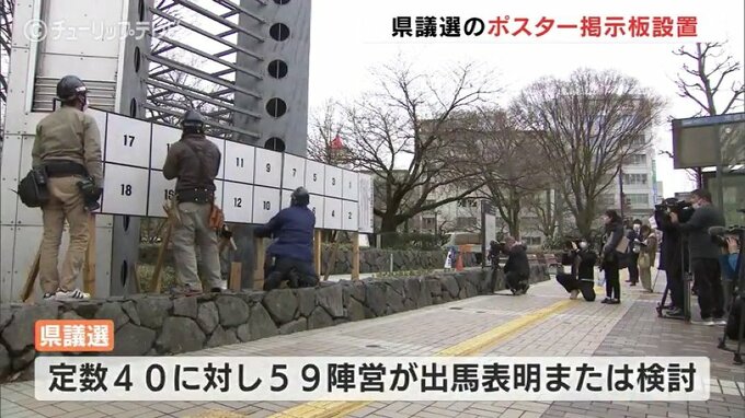 今回の県議選には定数40に対し、59陣営が出馬を表明、または検討しているとみられ、13選挙区のうち、9つの選挙区で選挙戦が確実の情勢です。