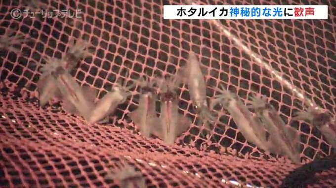ホタルイカは記録的な不漁となっていましたが、徐々に取れ始めていて、ショーは例年より50匹ほど少ないおよそ200匹でスタートしました。