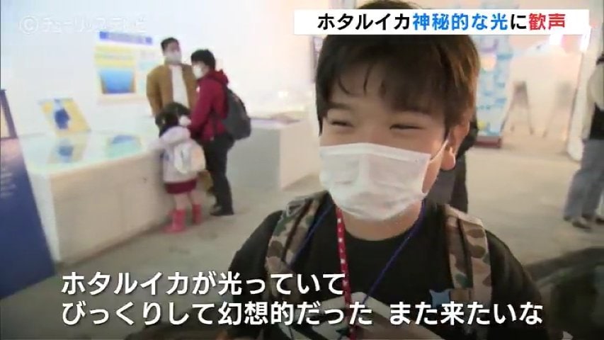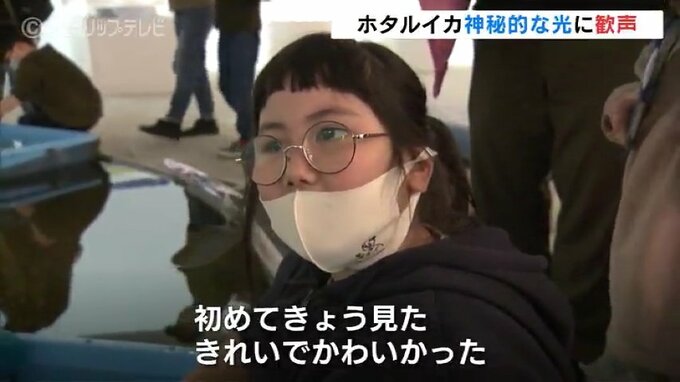 ほたるいかミュージアムで開かれているこの時期限定の人気イベント「ホタルイカの発光ショー」。第1回目のショーには県内外から約30人の客が訪れました。