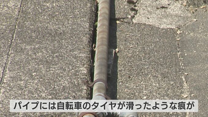 浅野さんは自転車を運転中、角を曲がろうとして鉄パイプの上で、タイヤを滑らせて転倒した可能性があることがわかりました。