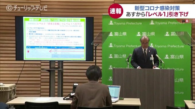富山県はさきほど、新型コロナの感染者が減少しているとして21日から、4段階ある感染対策のレベルを最も低いレベル1に引き下げることを決めました。