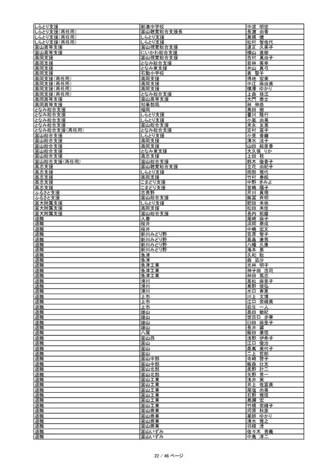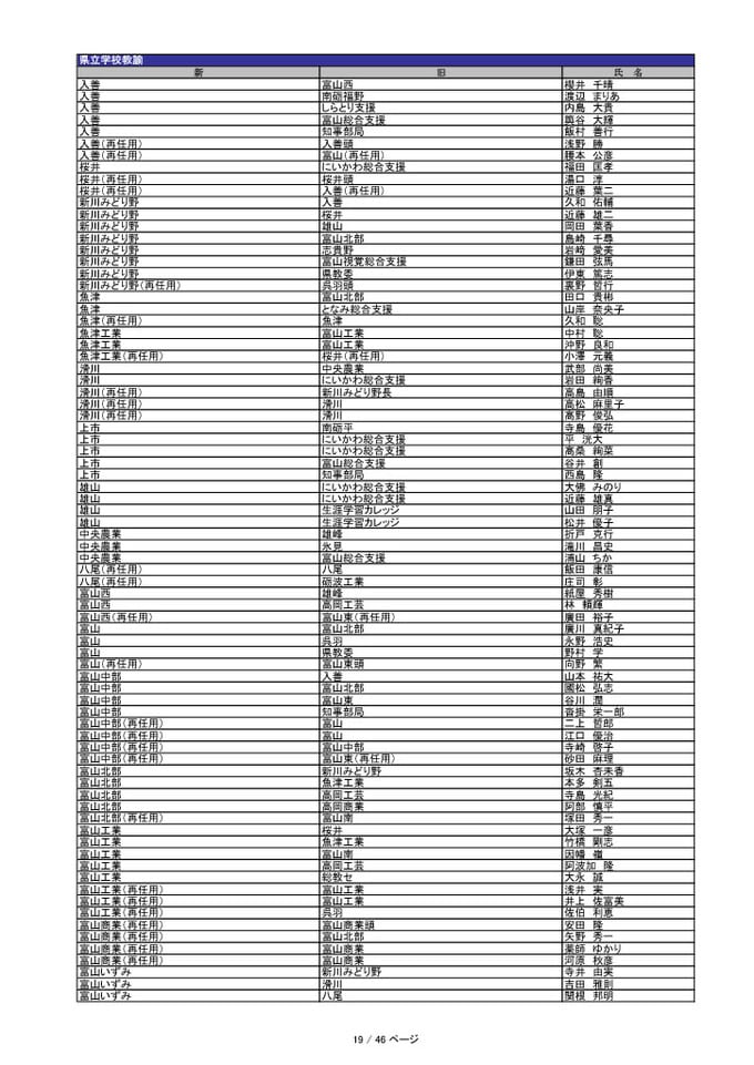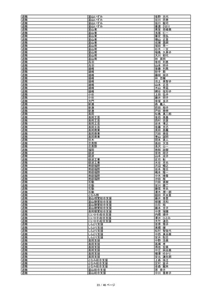 富山県 教職員人事異動・退職2023【高校を含む県立学校名簿】あの先生どこ行ったがけ? 2023年3月27日(月) 17:00 国内 富山県教育委員会は2023年4月1日付けの教職員人事異動を発表しました。高校を含む県立学校の異動です。