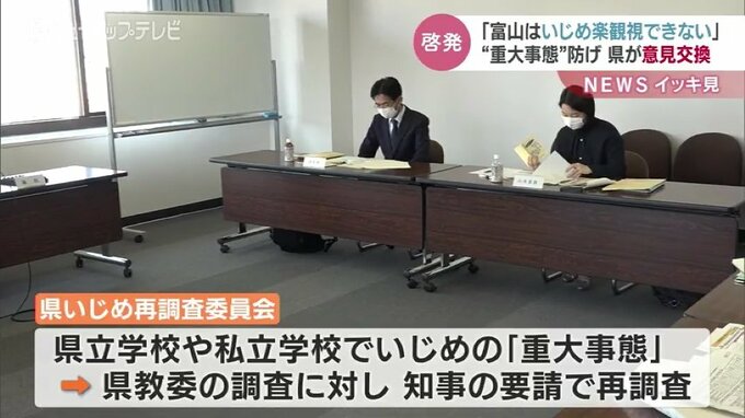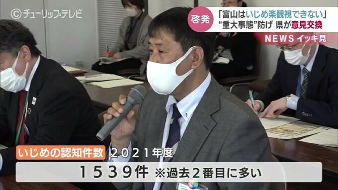 このなかでは、2021年度、富山県内でいじめによる自殺や長期の不登校などをさす「重大事態」が6件発生したほか、いじめの認知件数は1539件と過去2番目に多くなったことが報告されました。