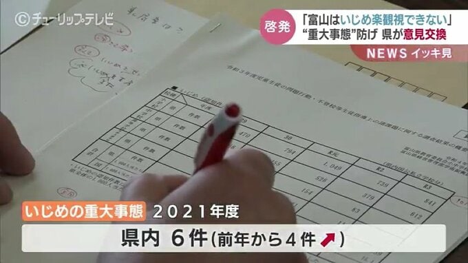 いじめによる自殺や長期の不登校などをさす「重大事態」が2021年度、富山県で6件あったことが県と医師、弁護士などの専門家の意見交換の場で明らかになりました。
