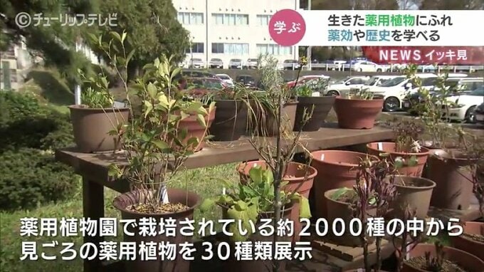 薬用植物に気軽に親しんでもらおうと、富山大学薬学部で生きた薬用植物の一般公開が28日はじまりました。