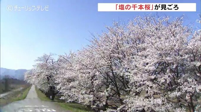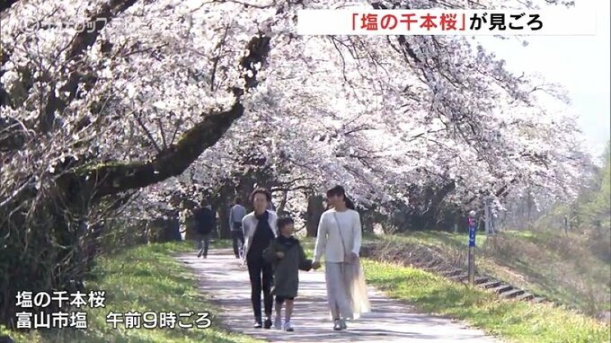 そんな中、富山市塩の神通川右岸にある「塩の千本桜」は今、見頃を迎えています。「富山さくらの名所70選」に選ばれている一帯には、合わせて1000本の桜が植えられていて、堤防沿いを歩きながら桜並木を楽しめます。