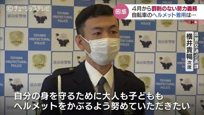 ヘルメット着用は、自分の身を守るための判断。警察はあくまで啓発し、お願いするしかないと話します。
