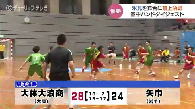 終盤には岩手・矢巾が負けじとキーパーを下げた7人攻撃などで猛追し1点差まで迫りますが1歩及ばず大阪・大体大浪商が5大会ぶり3度目の頂点に輝きました。