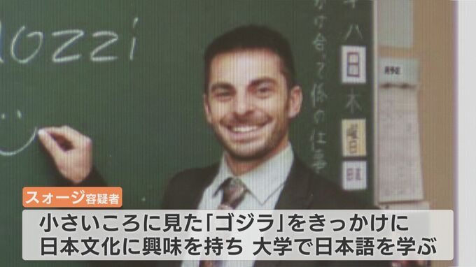 スォージ容疑者は、アメリカのミズーリ州セントルイス出身。小さいころに見た「ゴジラ」をきっかけに日本文化に興味を持ち、ミズーリ大学で日本語を学んだといいます。