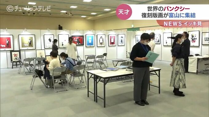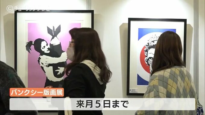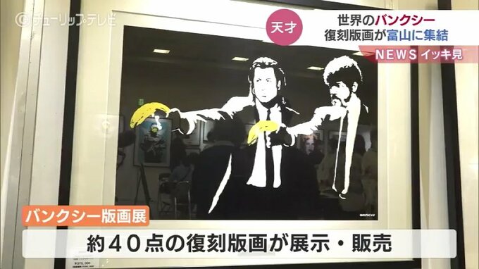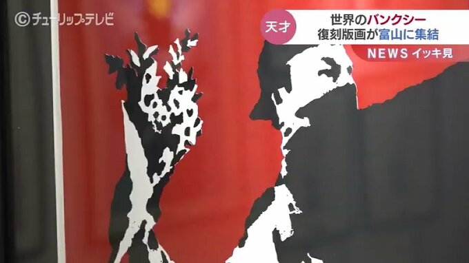 31日、世界的な覆面アーティストとして知られるバンクシーの作品の復刻版画が富山市のショッピングモールに並びました。