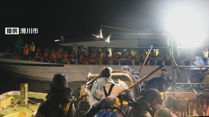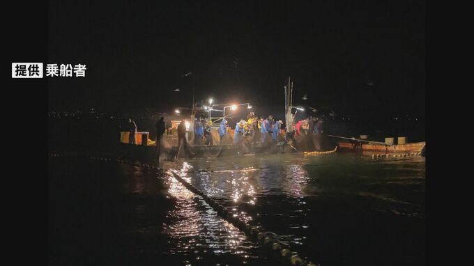 1日午前3時ごろ、富山県滑川市の滑川漁港を出発した観光遊覧船「キラリン」。県内外から訪れた観光客が沖合いおよそ1.5キロの漁場で、青白く光る神秘的な光景を目の当たりにしました。