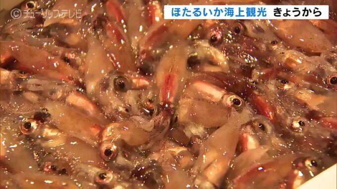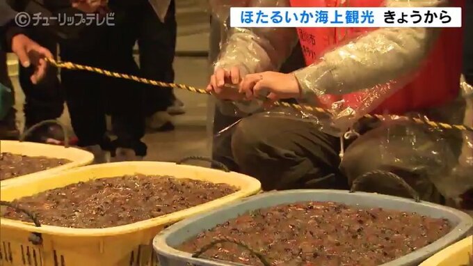 「ほたるいか海上観光」は、1日最大70人の定員で5月7日まで営業し、期間中の予約はすでに9割ほど埋まっているということです。