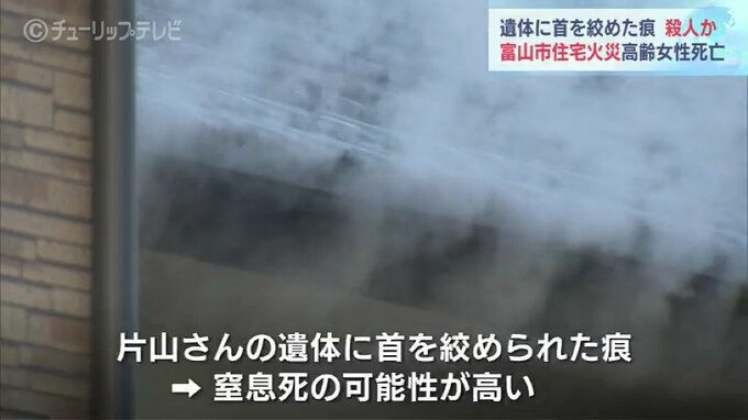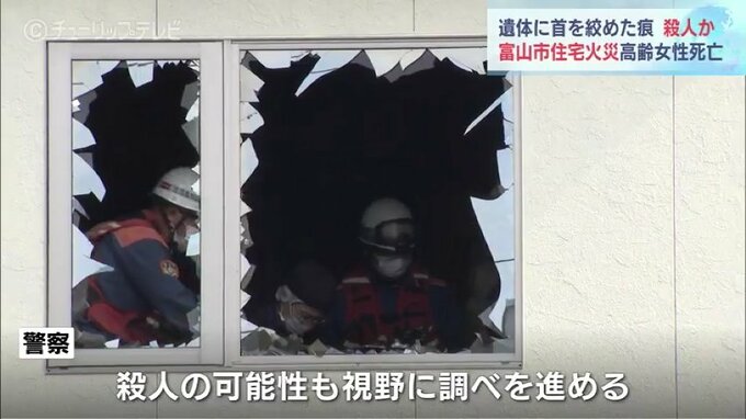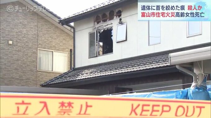 先月30日、富山市の住宅から出火し74歳の女性が死亡した火事で、女性の遺体に首を絞められた痕があり、1日、警察が殺人の可能性も視野に現場検証を行いました。