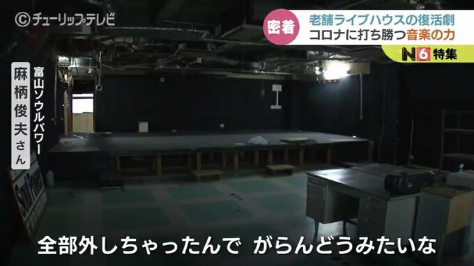 麻柄俊夫さん:「全部外しちゃったんで、がらんどうみたいな感じ。(コロナ禍の中で)イメージ悪いですからねライブハウス」