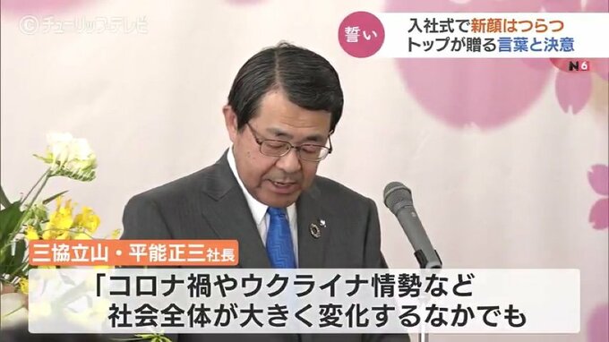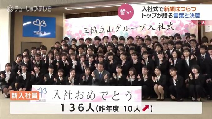 高岡市の大手アルミ建材メーカー三協立山では、4年ぶりにグループ全体での入社式です。