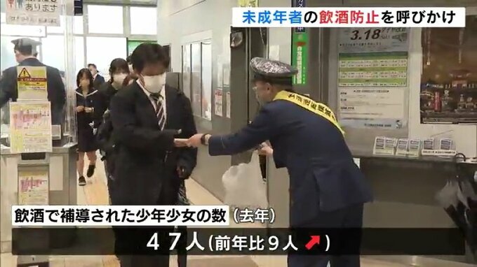 富山県警によりますと、去年1年間に飲酒で補導された少年少女の数は47人で、前の年から9人増えました。