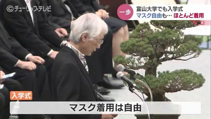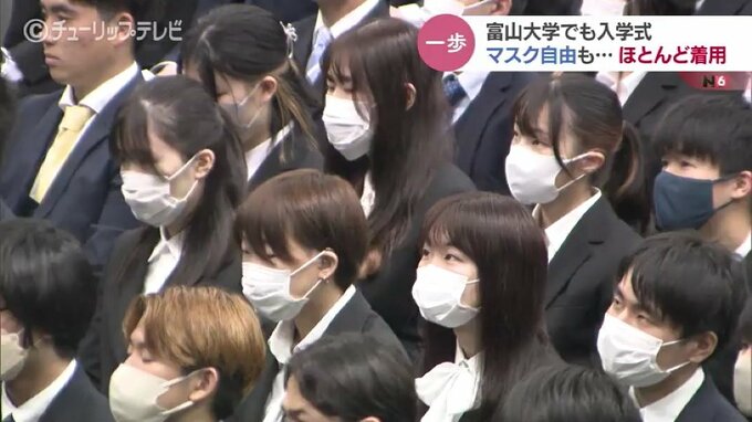 大学は、ことしはマスクの着用を任意としましたが、ほとんどの学生がマスクをつけて式に臨んでいました。