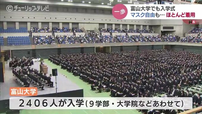 あいにくの雨となった、富山大学の入学式には9つの学部と大学院合わせて2406人が出席しました。