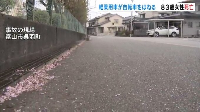 7日夜、富山市の市道で自転車に乗っていた83歳の女性が軽乗用車にはねられ死亡しました。