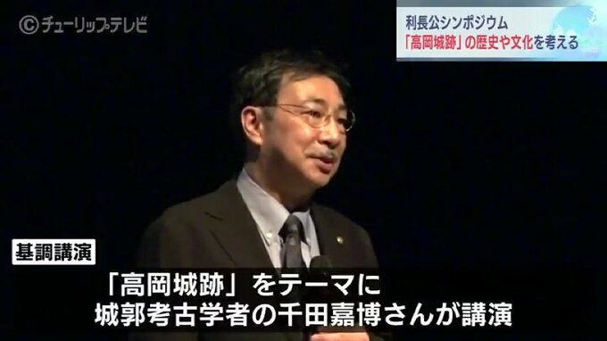 この日は、日本100名城に指定されている「高岡城跡」をテーマに城郭考古学者の千田嘉博さんが公演。参加者に「全国的に見ても保存状態がよく歴史的価値が高い高岡城跡を多くの人に広めてほしい」と呼びかけていました。