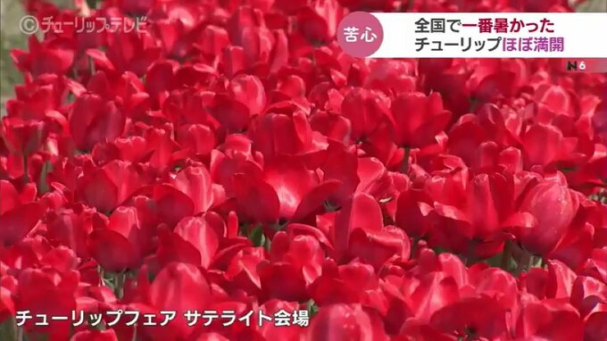「チューリップフェアの開幕にきれいにご覧いただけるように調整しているところです。5月5日までの会期がありますけど、早めにお越しいただけるのがいいかなと思っています」