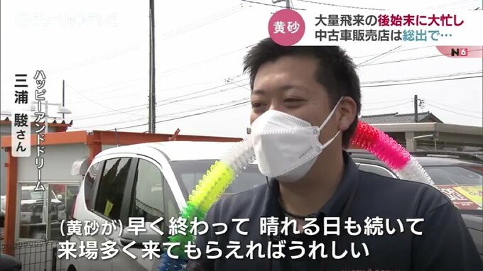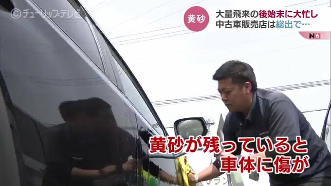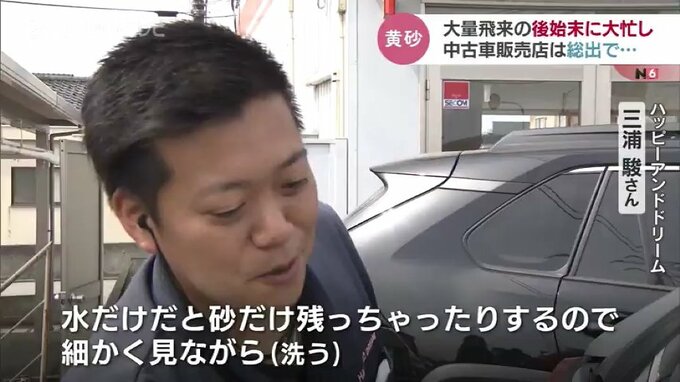 「毎年(黄砂は)来るんですけど、今回は特にひどいですね。水だけだと砂だけ残っちゃったりするので、細かく見ながらという感じ…」