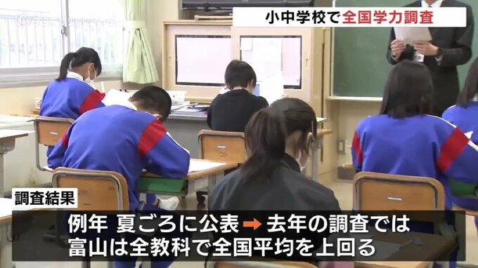 調査結果は例年、夏ごろに公表されていて去年の調査では、富山県はすべての教科で全国平均を上回っています。