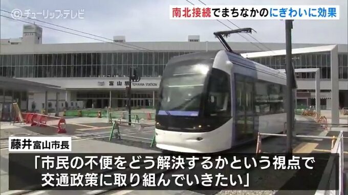 その結果、駅北側の元富山港線区間の利用者が1日あたりの平均で平日は495人増加、休日は186人増加し接続前のおよそ1.1倍となりました。