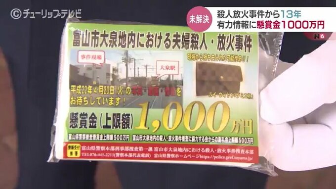 富山市の雑居ビルで夫婦2人が殺害された殺人放火事件から20日で未解決のまま13年が経過します。警察はこの日、現場近くで情報提供を呼びかけました。