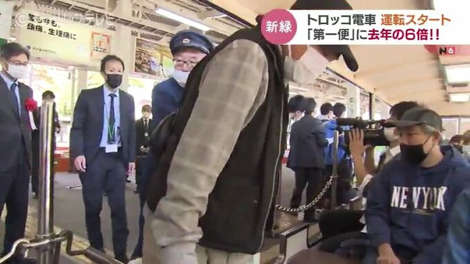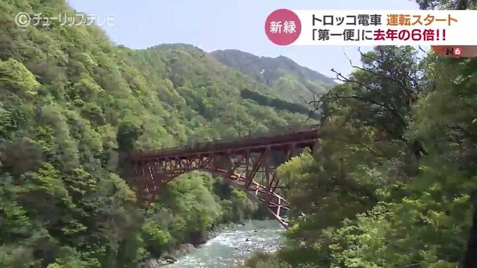 北アルプス黒部峡谷鉄道のトロッコ電車が20日、笹平駅まで運転を開始、第一便に大勢の観光客が列をつくりました。「第一便」のチケットを手にしたのはなんと300人。去年の6倍です。