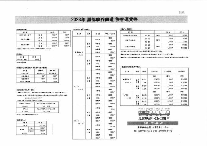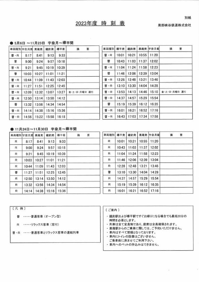 以下、黒部峡谷鉄道の時刻表を掲載します。