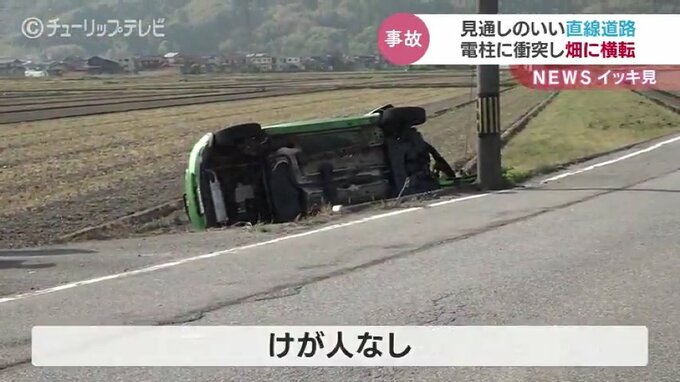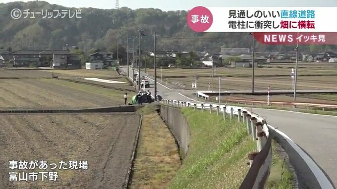 事故があったのは20日午後2時ごろ、富山市下野の片側1車線の見通しのいい直線道路で、普通乗用車が電柱に衝突し畑に転落しました。