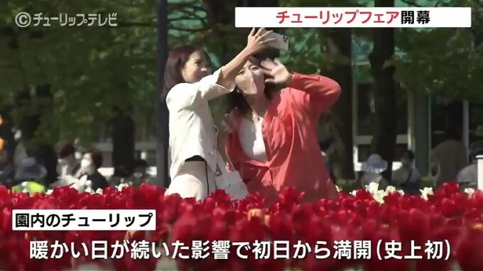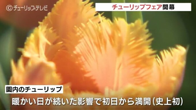 主催者は「来週から気温が下がる予報なので、(満開のチューリップが)なんとかもってくれればいいのですが…」と話し、会期中早めの来場を呼びかけています。
