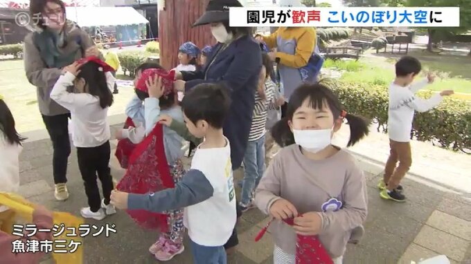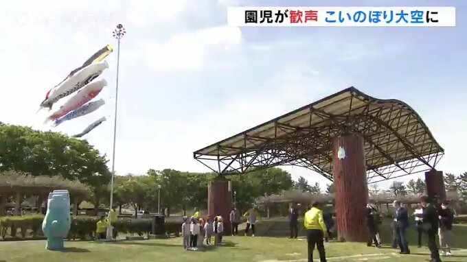 5月5日のこどもの日を前に、富山県魚津市の遊園地で“こいのぼり”が掲揚され、園児たちの歌声が響きました。