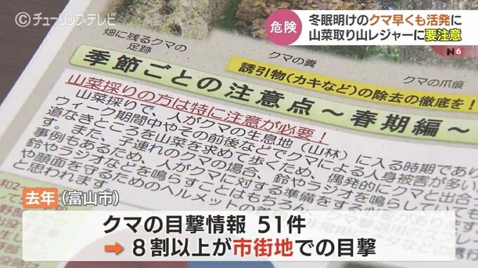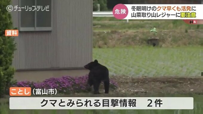冬眠明けのクマの動きが早くも活発化しています。山菜取りやレジャーなどで山に入る機会が増える大型連休を前に富山市は警戒を強めています。