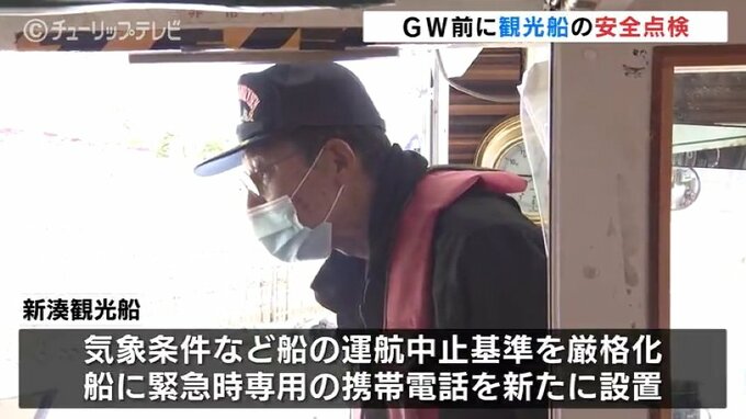 一方、新湊観光船では北海道の事故を受けて、気象条件など運航中止基準をより厳しくしているほか、船に緊急時専用の携帯電話を新たに取り付けようと準備しています。