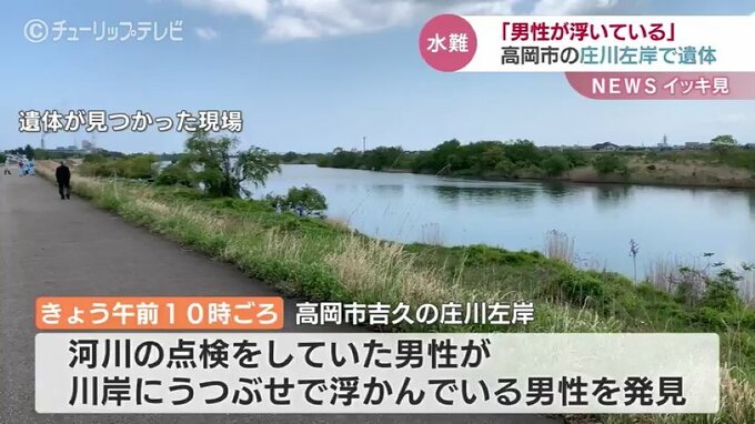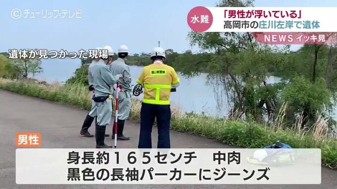 遺体は死後日数が経過しているとみられ、年齢はわかっていません。現場は路面電車万葉線の新吉久駅に近い牧野大橋の500メートルほど下流の庄川左岸です。