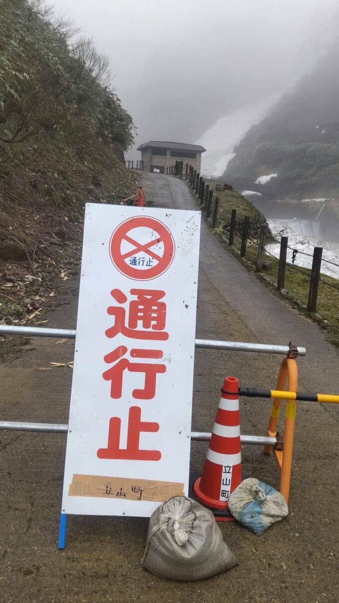 立山町によると落石の大きさは直径1メートルほどで、町は標高1040メートルの飛龍橋の先から遊歩道終点の滝見台までを、午前11時ごろに通行止めとしました。