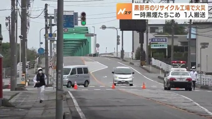 30日午前、富山県黒部市の工場で火事があり、黒煙が立ち込め県道が一時通行止めとなりました。また、30代の従業員の男性が搬送されましたが、命に別条はないということです。