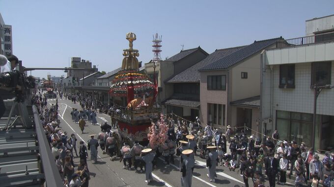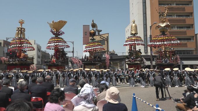 高岡関野神社の春の例大祭「高岡御車祭(たかおかみくるまやままつり)」。新型コロナの感染拡大や天候不良で山車の巡行が3年間見送られましたが、ことしは7基の豪華絢爛な山車(やま)が練り歩きました。