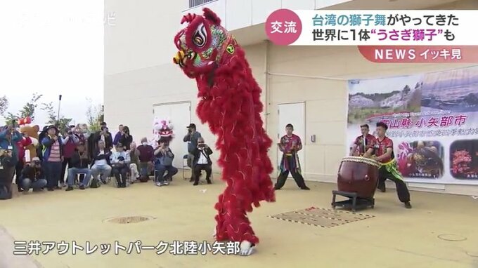 ニュースクリップ 台湾の獅子舞がやってきた!世界に1体…“うさぎ獅子” 富山 2023年5月1日(月) 21:30 国内 台湾の獅子舞がやってきました。このイベントは富山県小矢部市と台湾の交流事業として開かれたものです。 特別に世界に一体しかないという“うさぎ獅子”が舞を披露。日本の獅子舞とは違ったアクロバティックな演舞で、会場を大いに沸かせました。