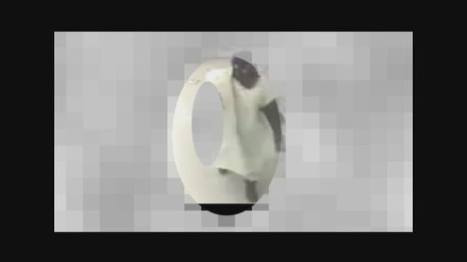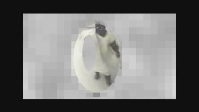 これが富山県警が公開した映像です。時間は3秒のものが2つ。コマ送りにして“犯人”の動きが分かるようにしました。1つ目の「3秒」にはやや上の角度から防犯カメラの方向にゆっくり歩いてくる様子が映っています。黒い目出し帽に白いポンチョという異様な姿です。右手に持っているのは凶器でしょうか。県警が映像を加工して見えないようにしています。
